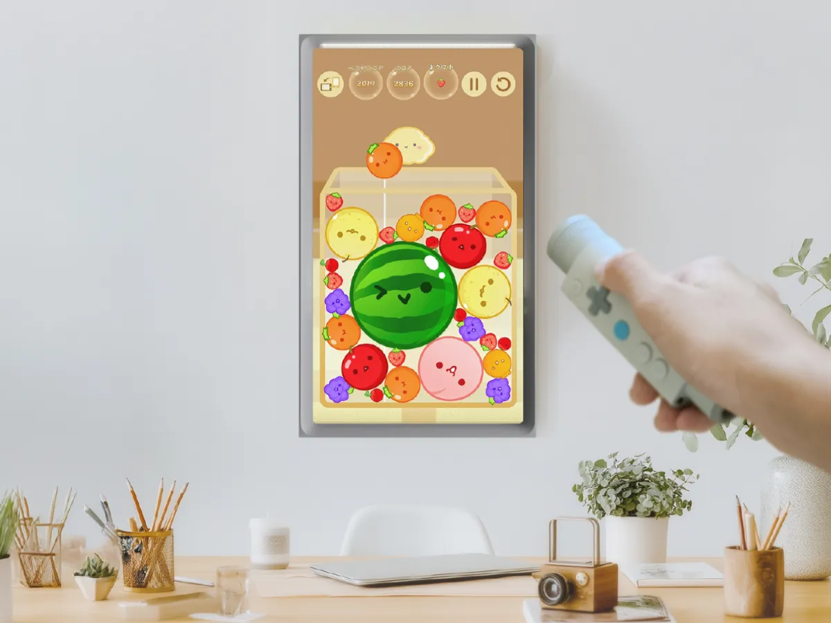 Atmoph Window Yoのゲームの第一弾として、累計ダウンロード数1,100万を突破(2025年8月現在)の大人気パズルゲーム、スイカゲーム®を無料でお楽しみいただけます。